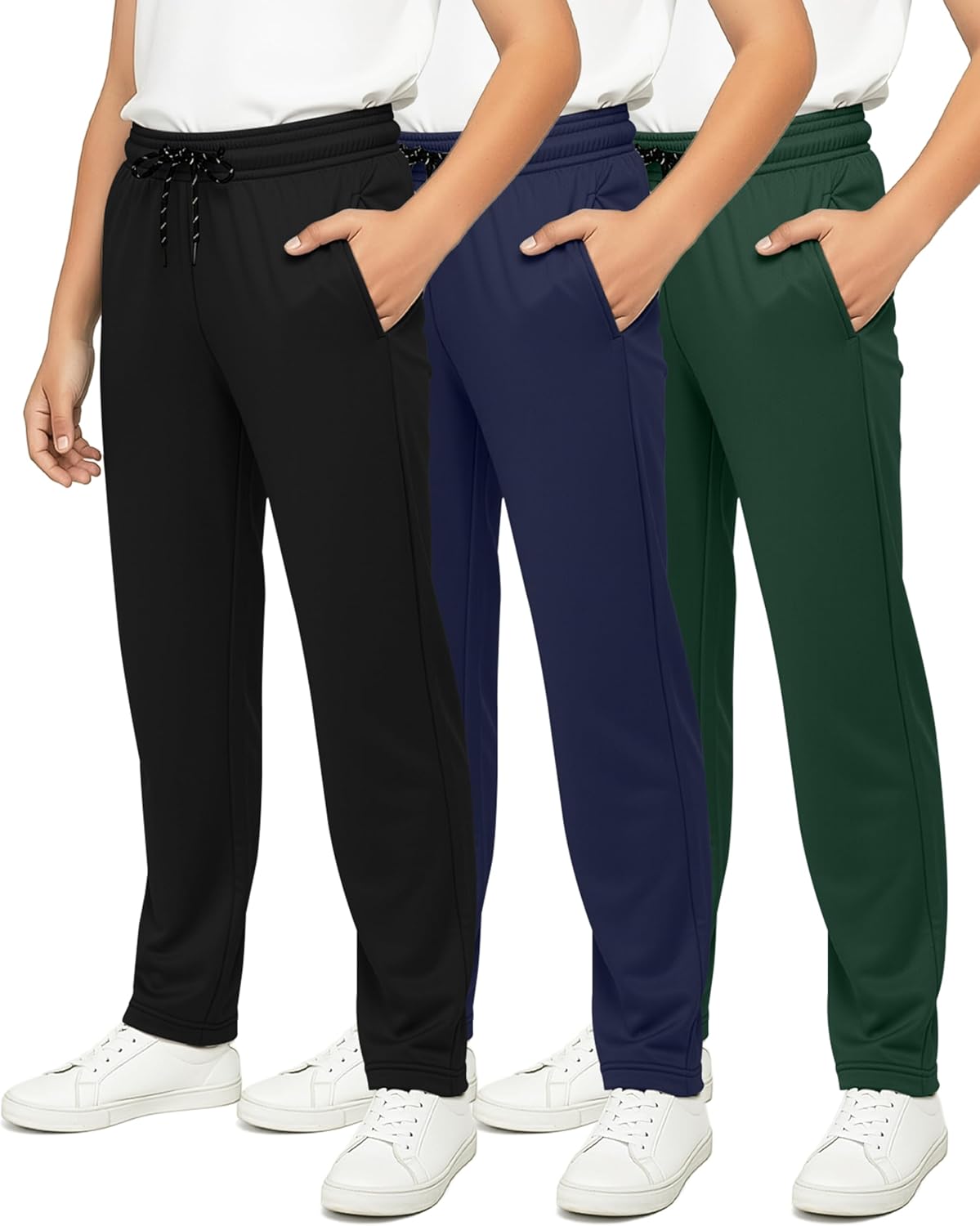 Real Essentials 3 Pack: Boys' Mesh Open Bottom Active Sweatpants with Pockets & Drawstring