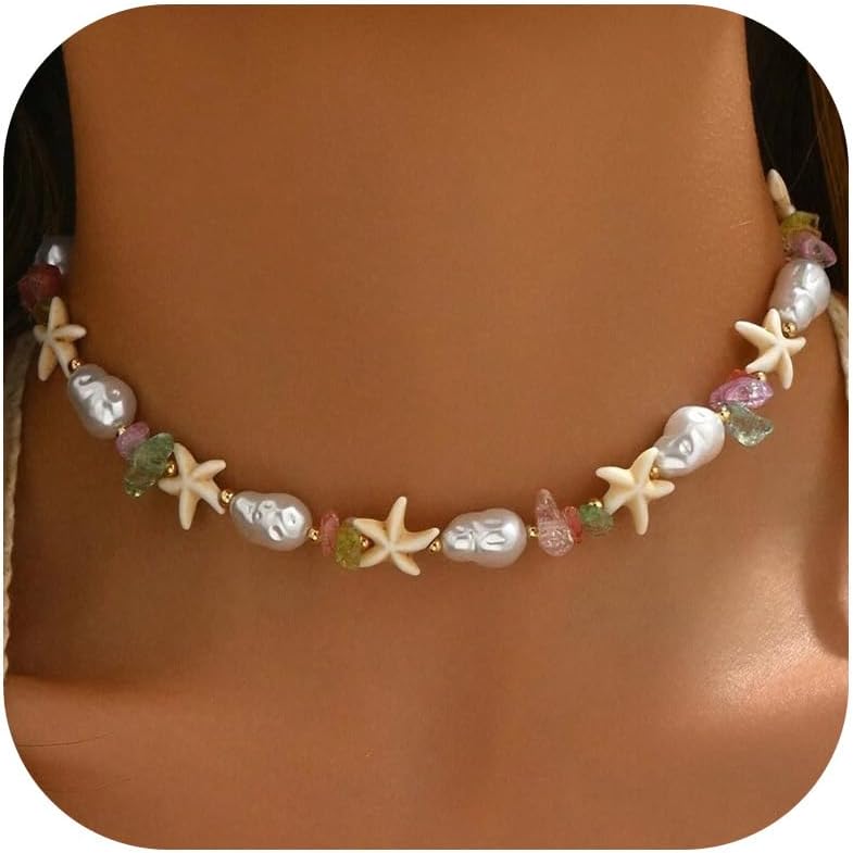 Frodete Starfish Necklace for Women Colorful Beaded Necklace Beach Jewelry Summer Charm Choker for Travel Trendy Gifts