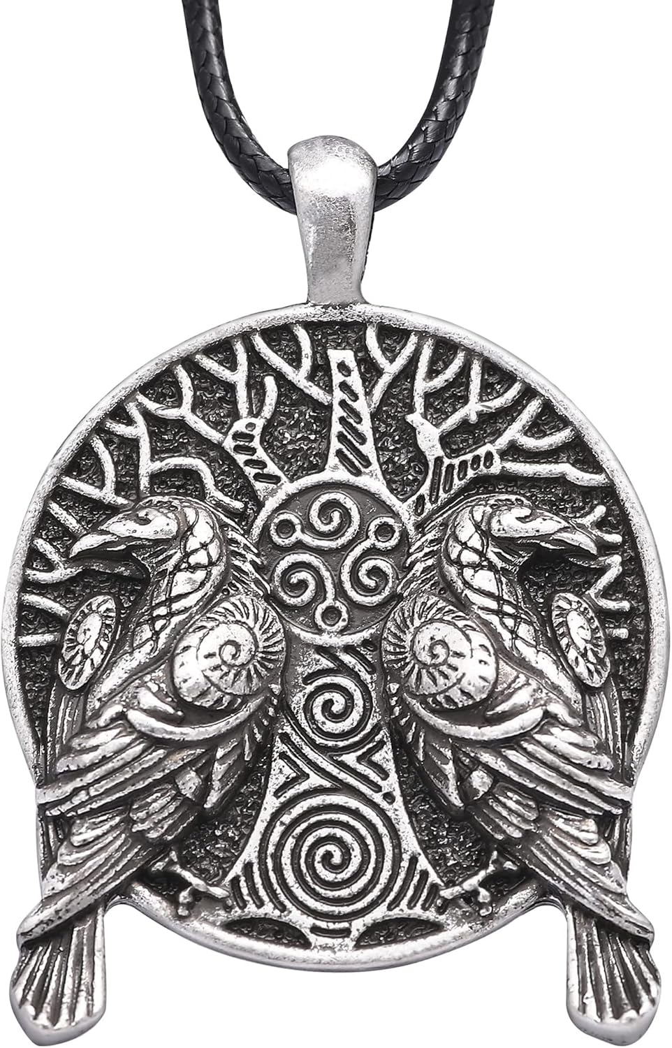 HAQUIL Raven Necklace, Viking Huginn and Muninn Tree of Life Pendant, Norse Jewelry Gift for Men and Women