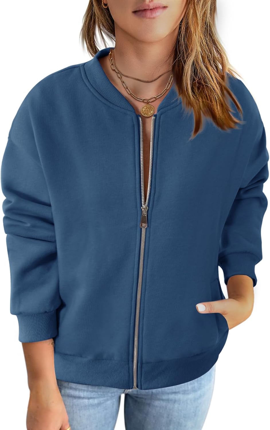 MEROKEETY Womens Long Sleeve Zip Up Sweatshirts Jackets Casual Loose Outwear with Pockets