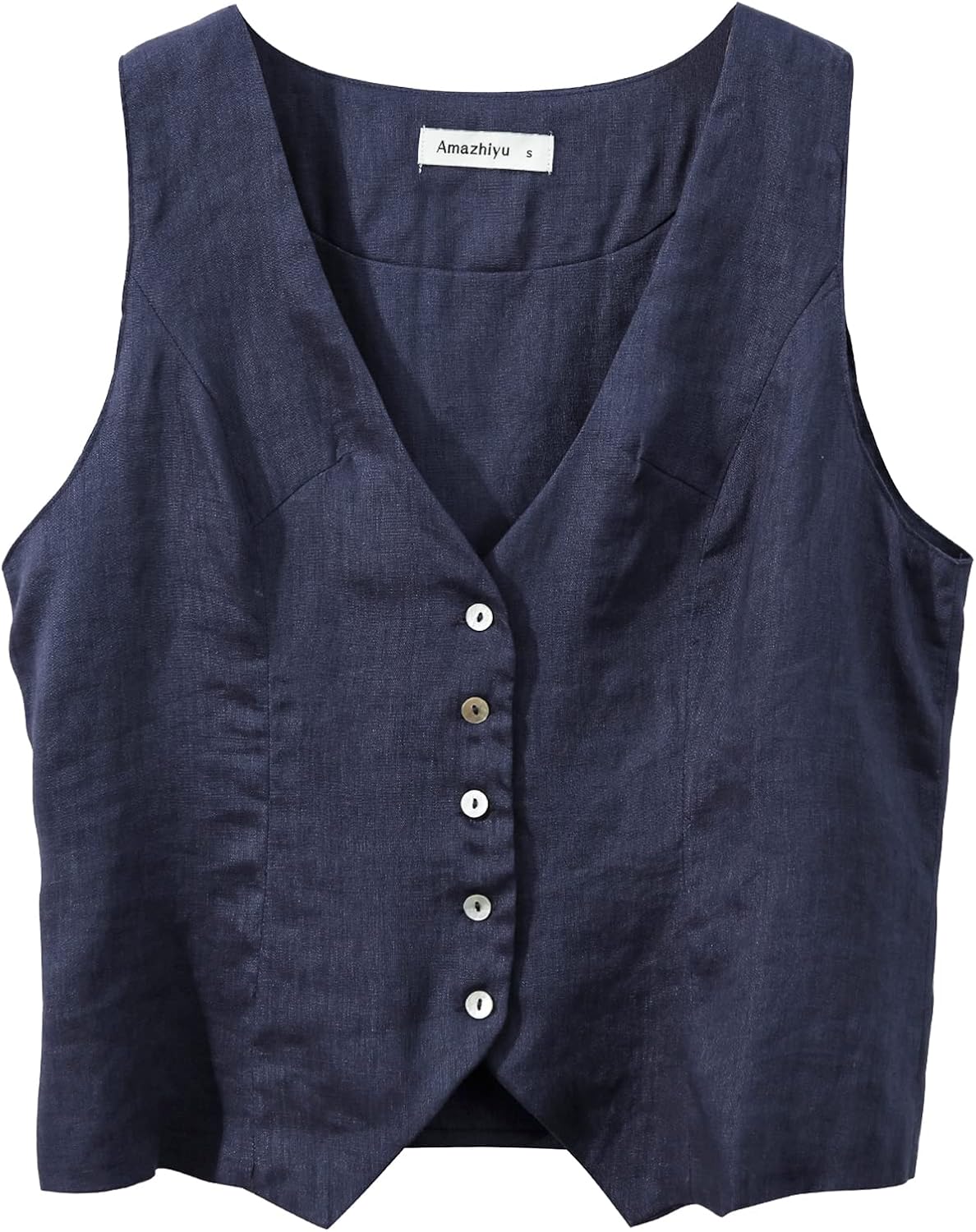 Amazhiyu Womens Pure Linen Sleeveless Button Down Crop Top V Neck Waistcoat Vest