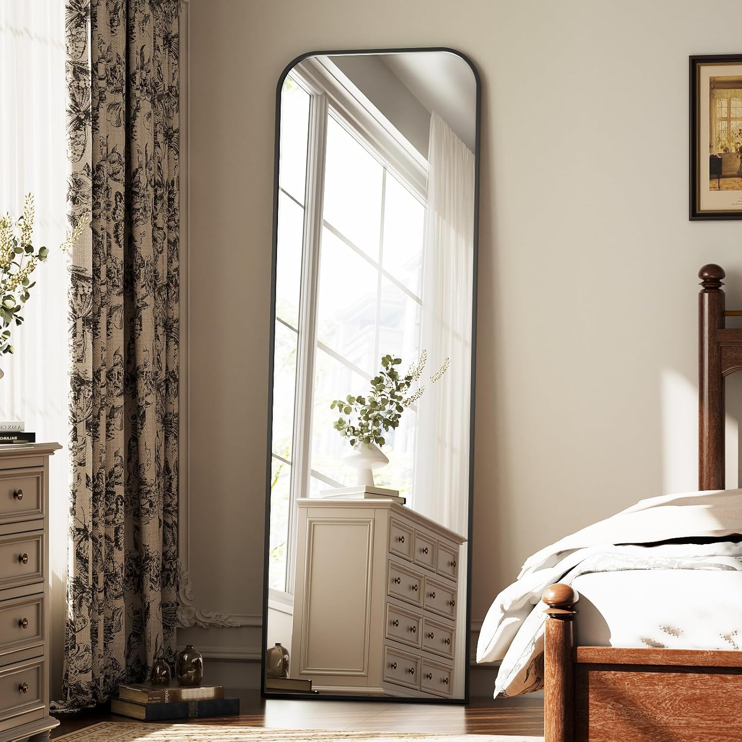 Full Length Mirror 56"x21" Arched Floor Standing Large Mirrors Full Body Mirror with Stand - with Aluminum Frame for Bedroom Living Room, Black