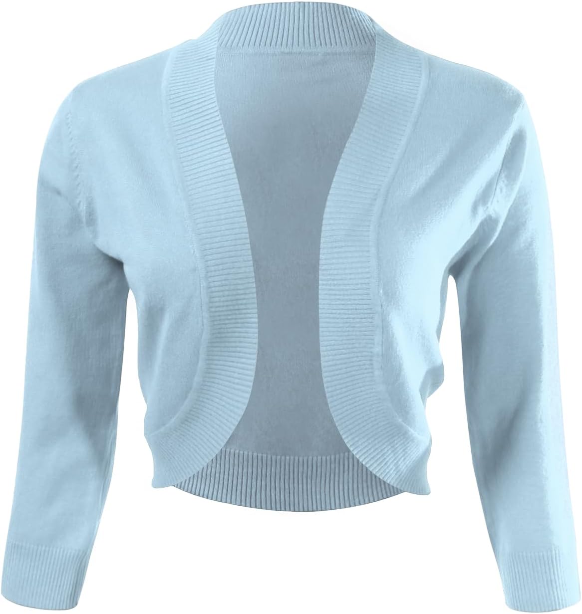 Allsense Women's 3/4 Sleeve V-Neck Cropped Bolero Shrug Cardigan