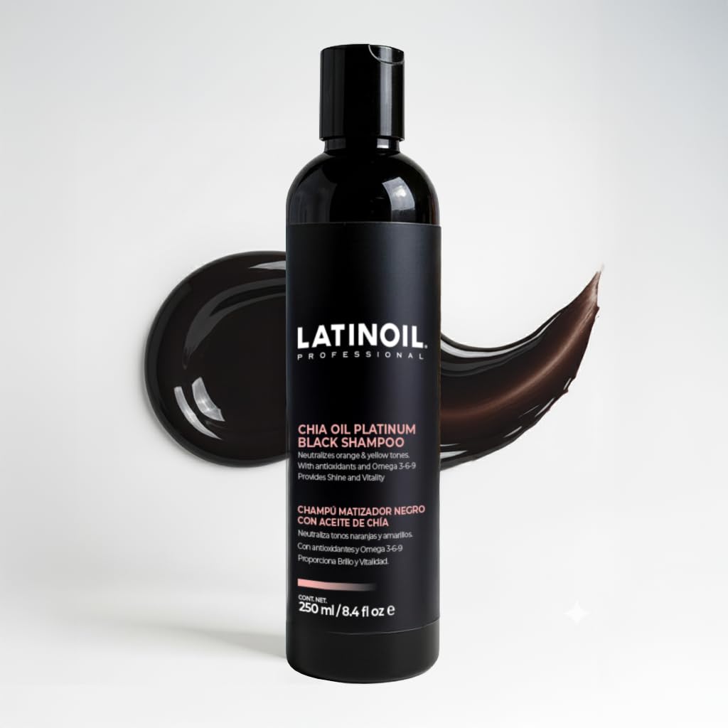 LATINOIL - Platinum Black Shampoo, Naturally Colored Hair, Hair Toner and Color Depositing Shampoo with Chia Oil, 250 mL