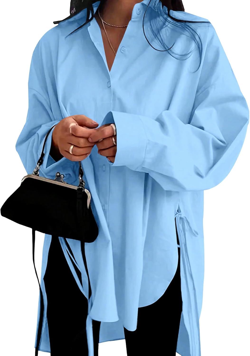 Oversized Button Down Shirts for Women Long Sleeve Boyfriend Shirt Dress Casual Collar Sexy Split High Low Blouse 100% Cotton
