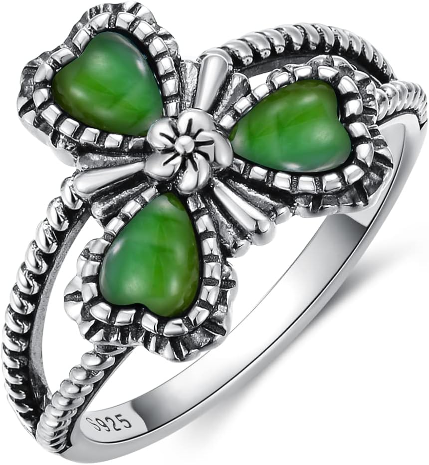 Clover Turquoise Ring 925 Sterling Silver Natural Turquoise Flower Ring 3 Heart Shape Stone Boho Lucky Ring Gift for Women