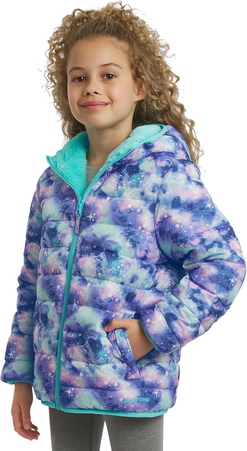 Lands' End Girls Reversible Faux Fur Lined Insulated Puffer Jacket