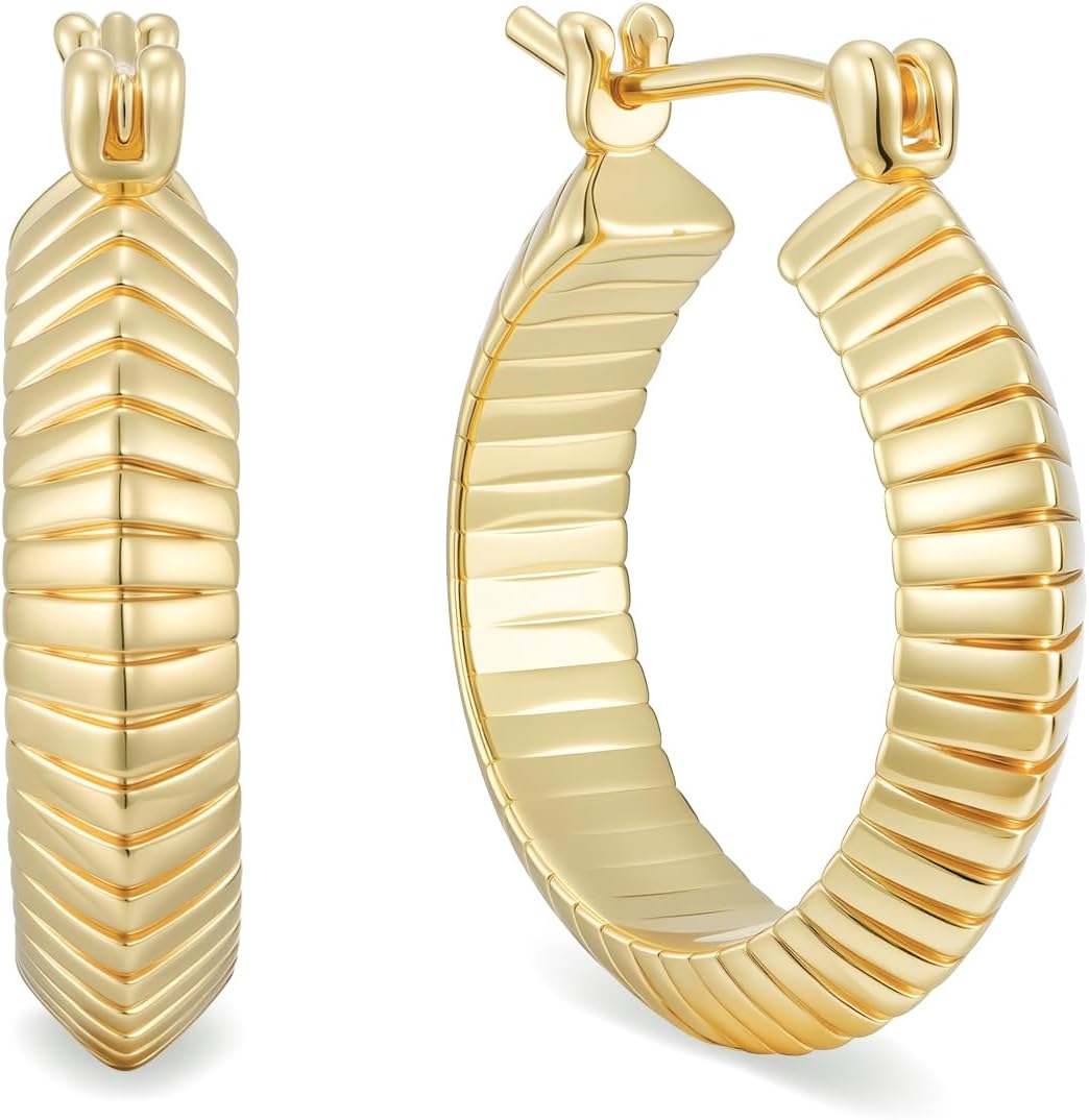 14K Gold Plated Hoop Earrings for Women Trendy Gold Plated Earrings Chunky Hoop Earring Snake Bone Thick Golden Hoops Unique Jewelry for Women Every Occasion 22MM