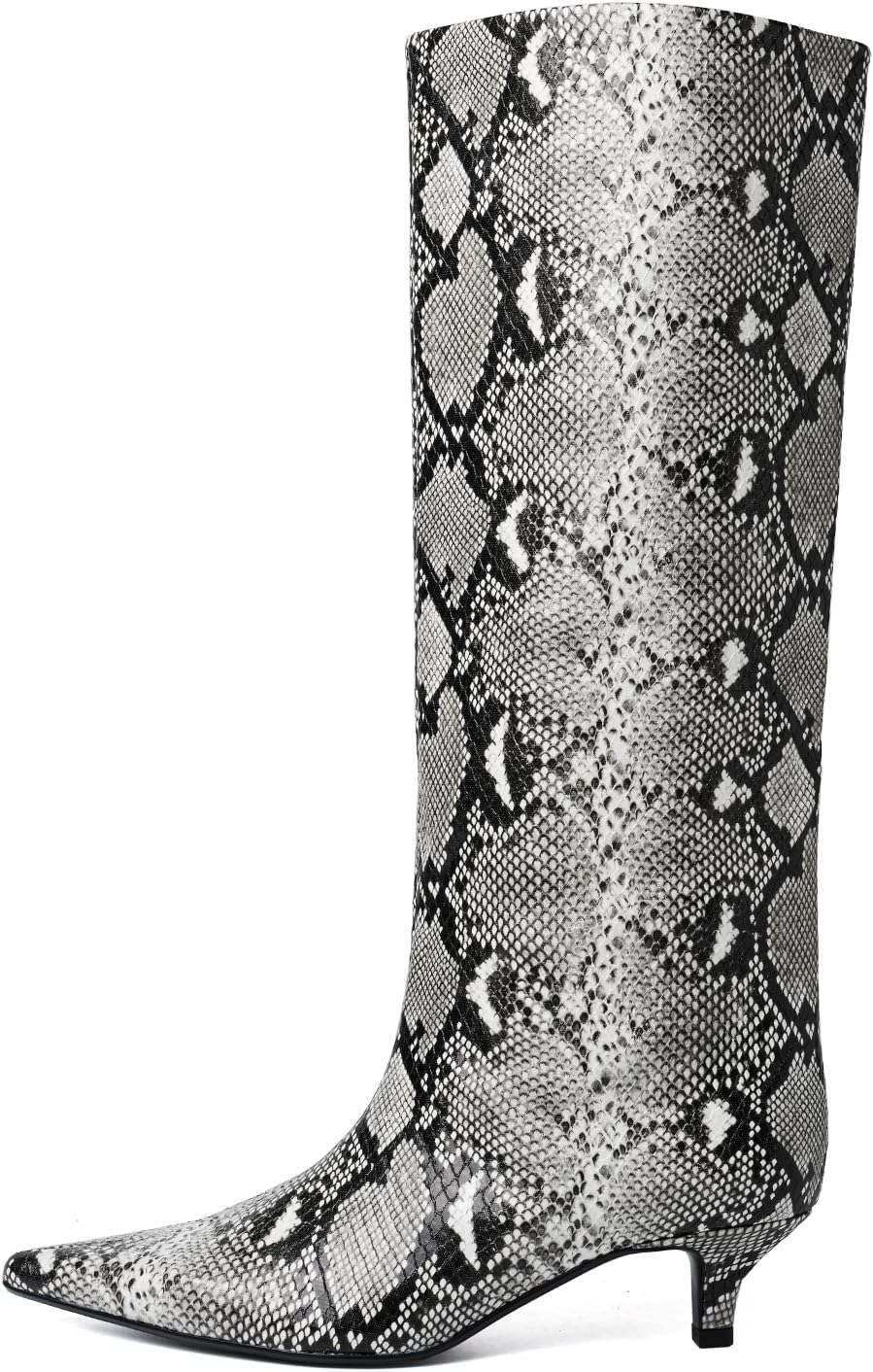 Marravosse Women's Knee High Boots Kitten Heel Pointed Toe Pull on Tall Boots for Women