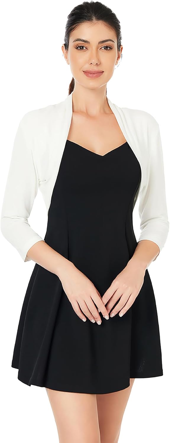 AmélieBoutik Women Ruched Casual 3/4 Sleeve Bolero Cropped Shrug Open Front Cardigan Jacket