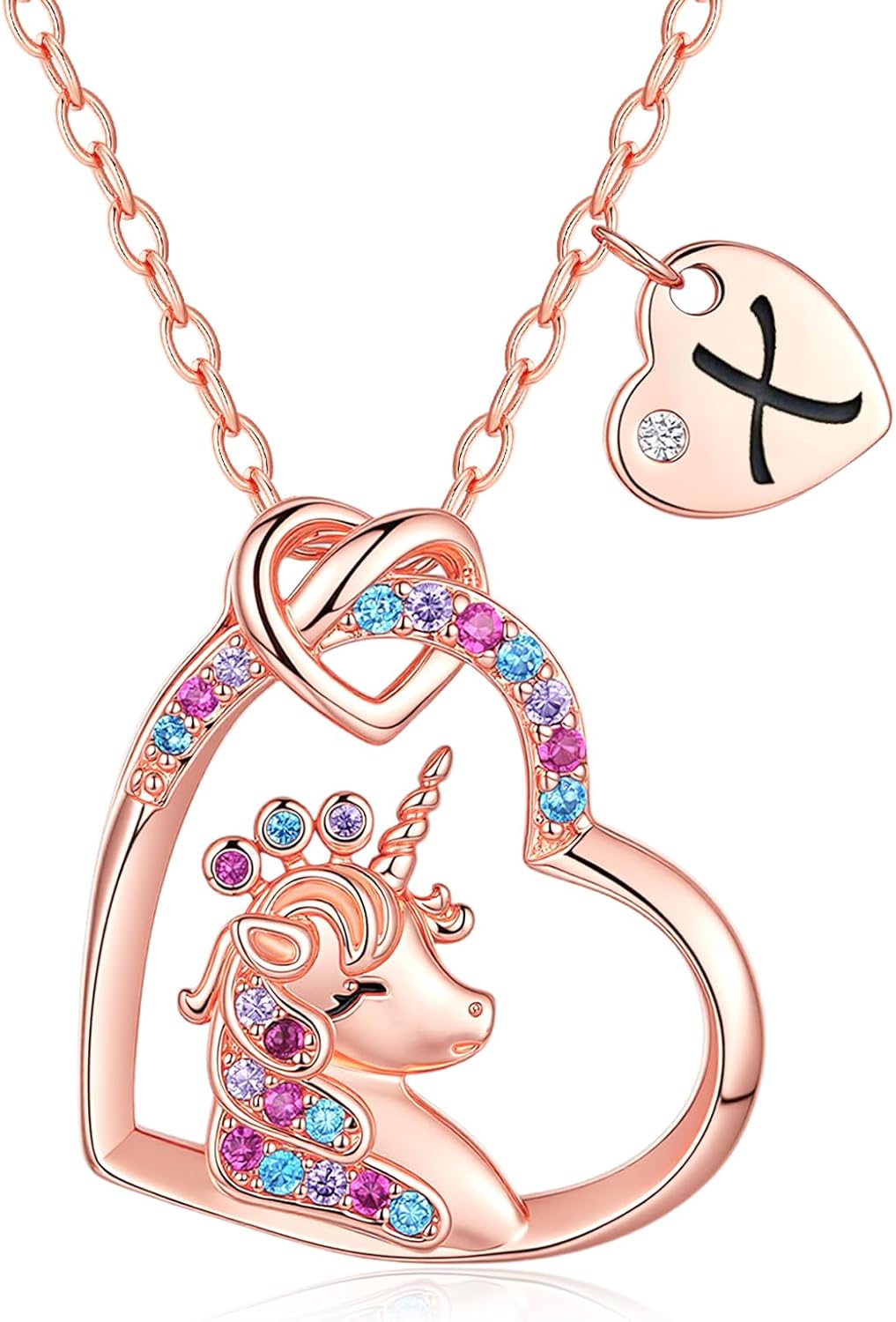 Unicorn Gifts for Girls, Colorful CZ Heart Unicorn Necklaces Initial Necklace Birthday Christmas Gift for Girls Teens