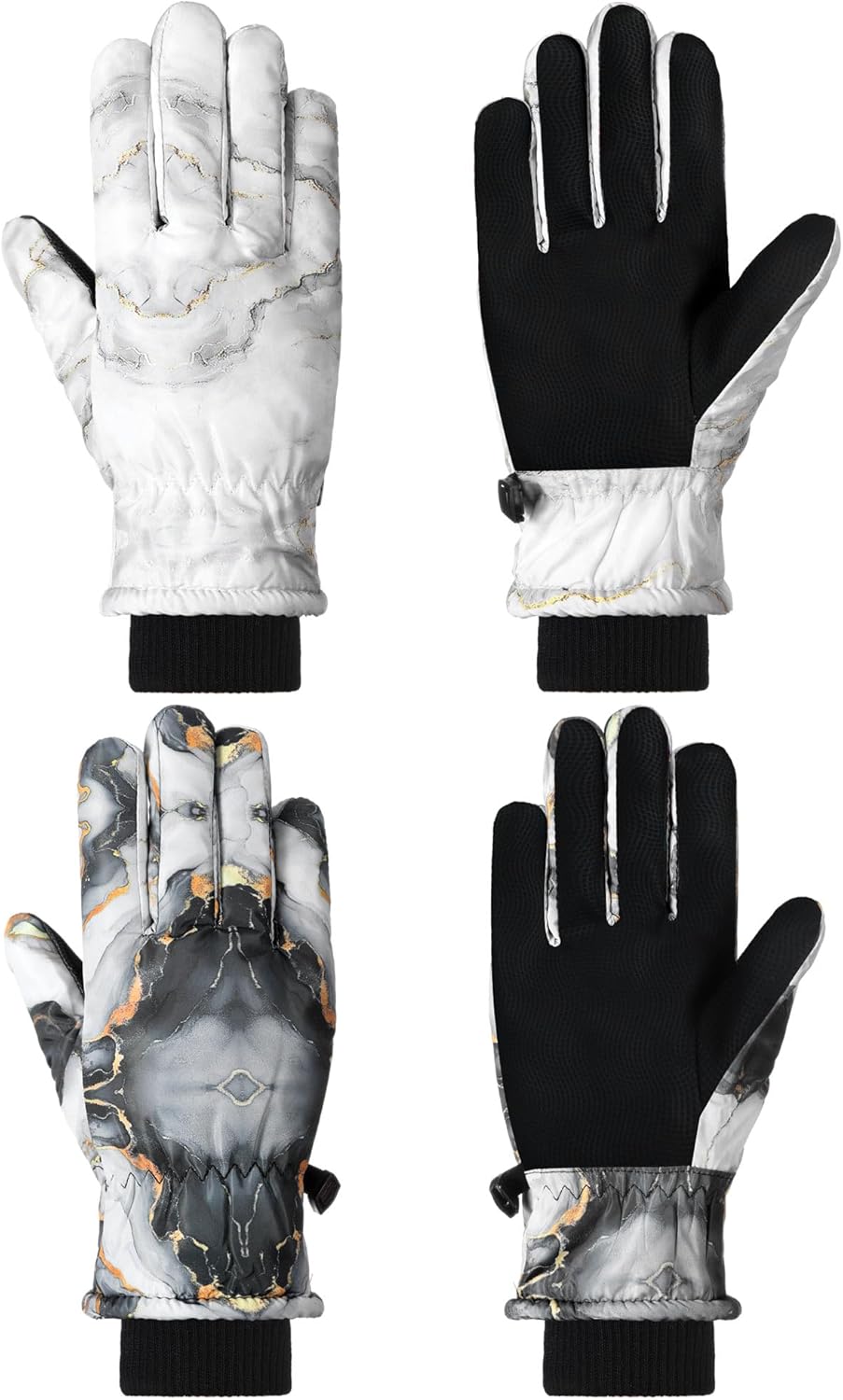SATINIOR 2 Pairs Kids Waterproof Winter Snow Gloves Ski Gloves for Boy Girl Outdoor Warm Thickening Snowboar