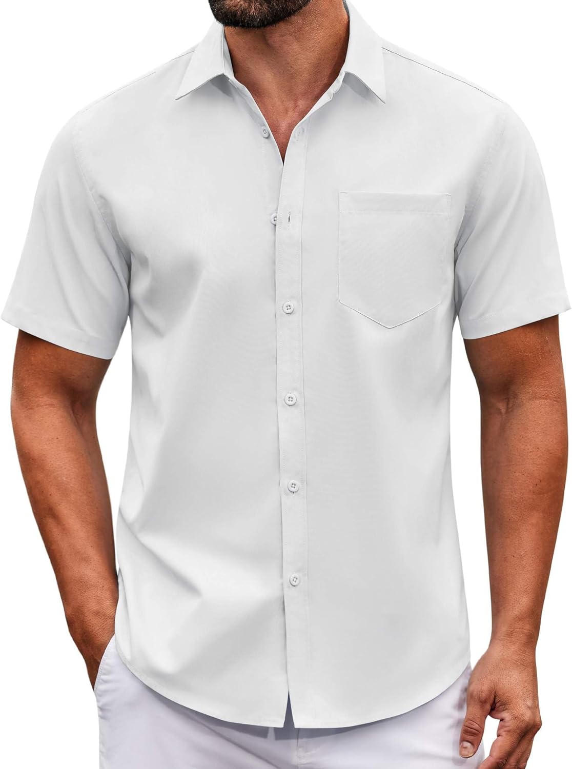 COOFANDY Mens Casual Button Down Shirts Short Sleeve Summer Untucked Dress Shirt with Pocket