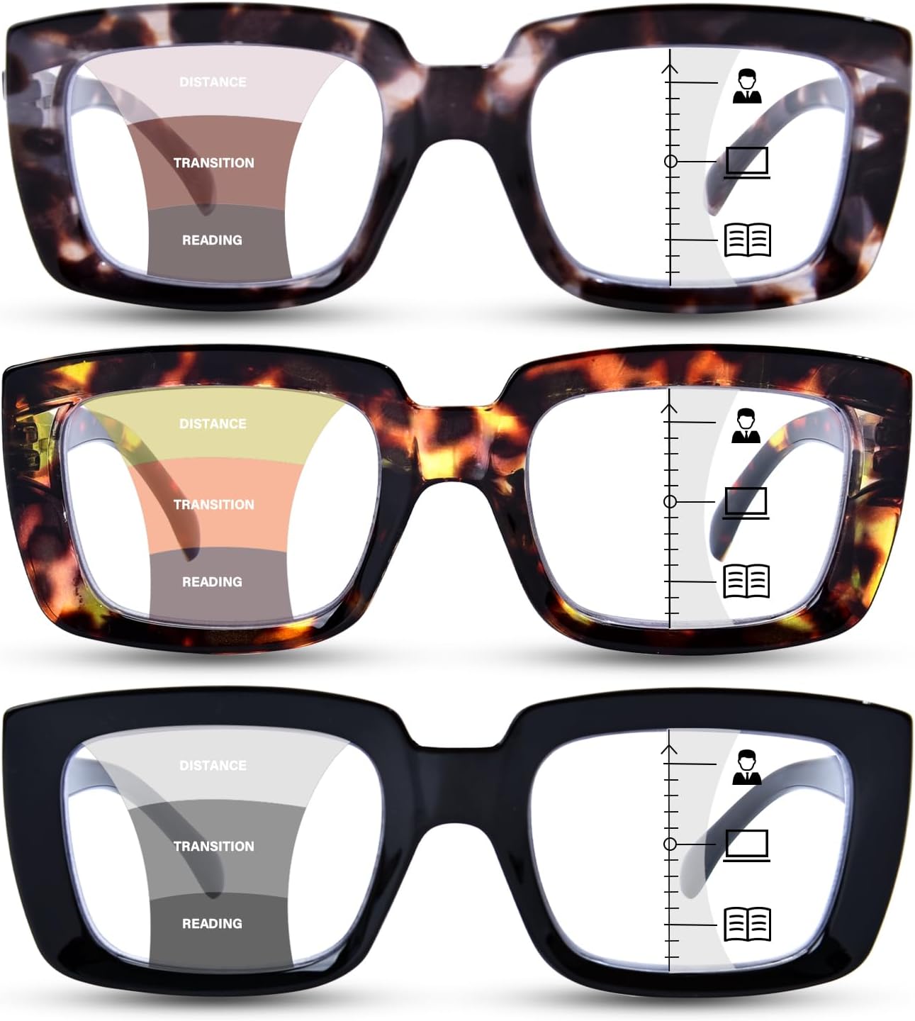 Progressive Multifocal Reading Glasses for Women Men Oversized Anti Blue Multifocus Computer Readers Spring Hinges