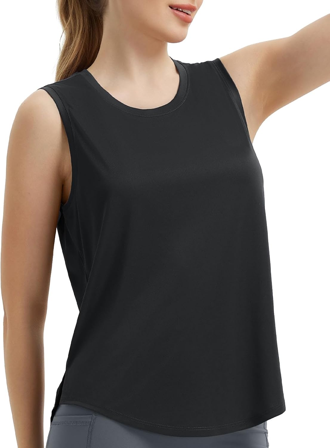 baleaf Women's Sleeveless Workout Tops Athletic Racerback Tank Top High Neck Yoga Running Shirts Loose Fit Gym Tennis Black XL