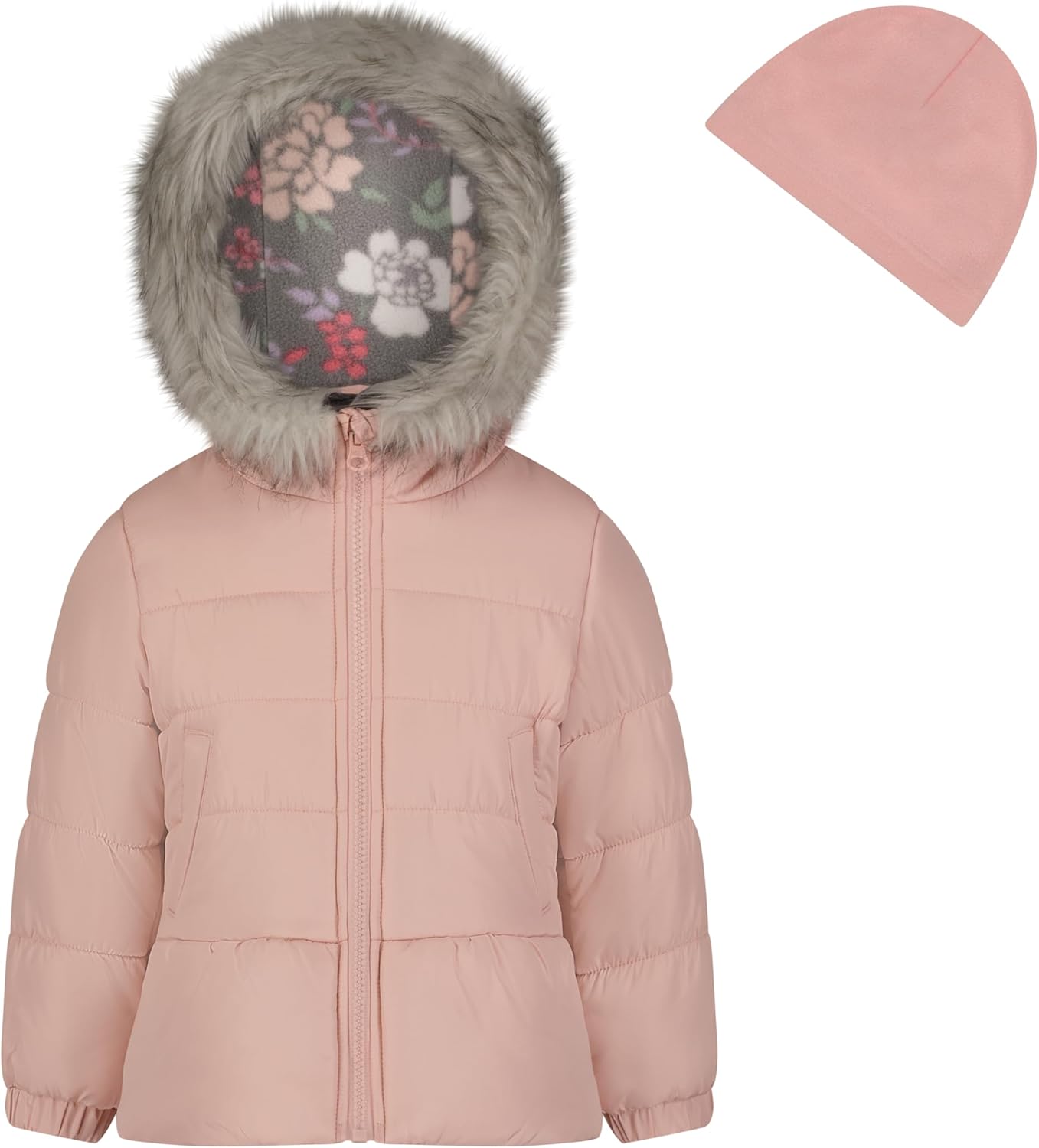 Girls' Warm Winter Puffer Jacket with Faux Fur Hood and Beanie