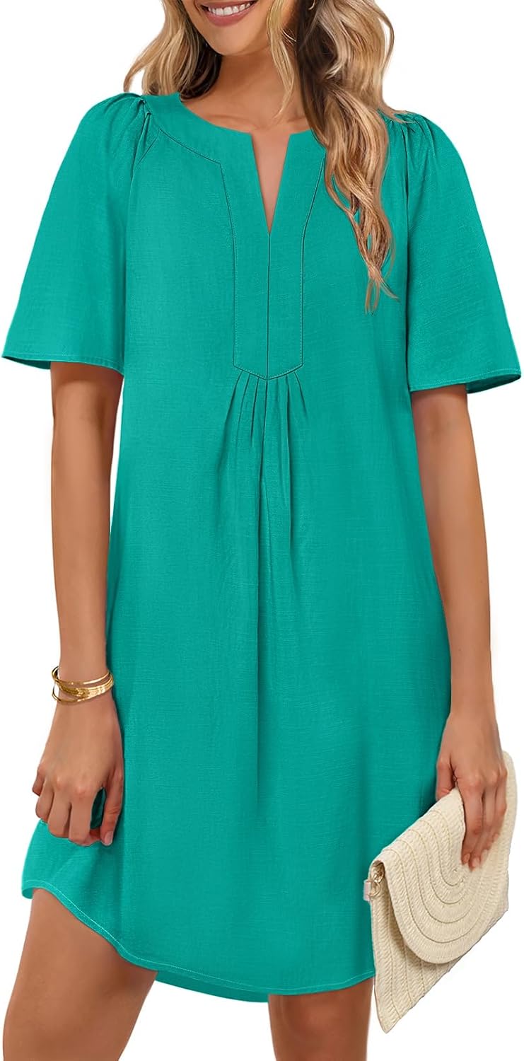 MEROKEETY Women's Summer Casual Shift Dresses Beach Vacation Short Sleeve V Neck Spring Mini Dress