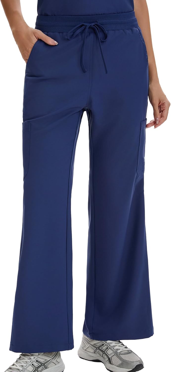 Scrub Pants for Women High Rise Four Way Stretch Flare Yoga Cargo Pants with 6 Pockets