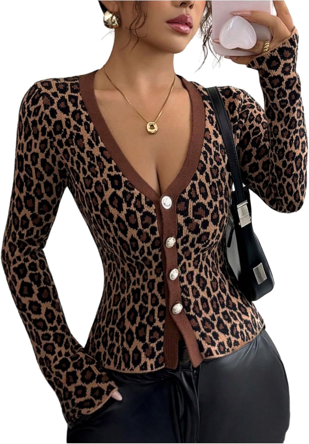 SOLY HUX Women's Leopard Cardigan Sweater Cheetah Print Button Down V Neck Long Sleeve Knit Going Out Tops Fall Clothes