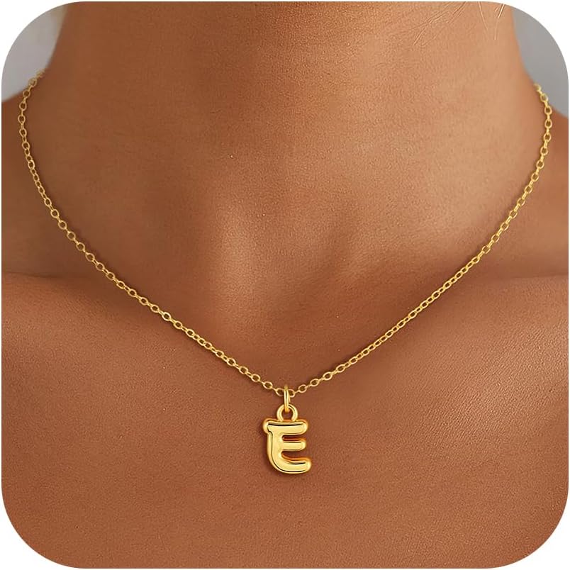 Valentines Day Gifts for Kids Women Girls - Initial Necklace, Dainty 18K Gold Plated Bubble Letter A - Z Necklace Teen Girl Gift Trendy Stuff Valentines Gifts for Her Mom Wife