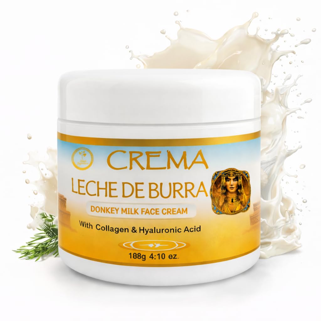 - 🧴 Enriched with Donkey Milk, Collagen & Hyaluronic Acid A luxurious blend that deeply hydrates and promotes skin elasticity. 🧴 Enriquecida con Leche de Burra, Colágeno y Ácido Hialurónico Hidratación profunda y elasticidad para una piel más firme y radiante.