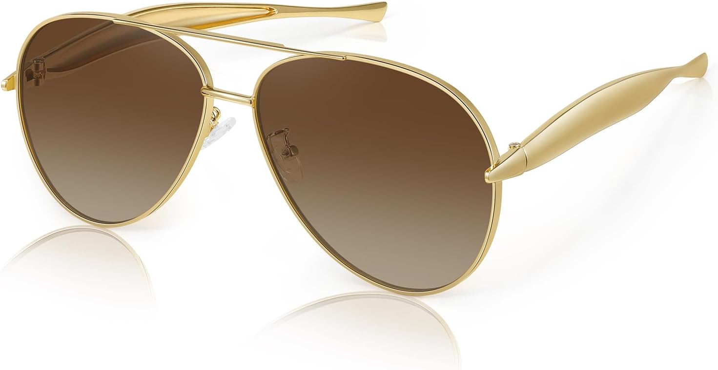Retro Oversized Aviator Sunglasses for Women Men,Trendy Vintage 70s Metal Large Pilot Sun Glasses