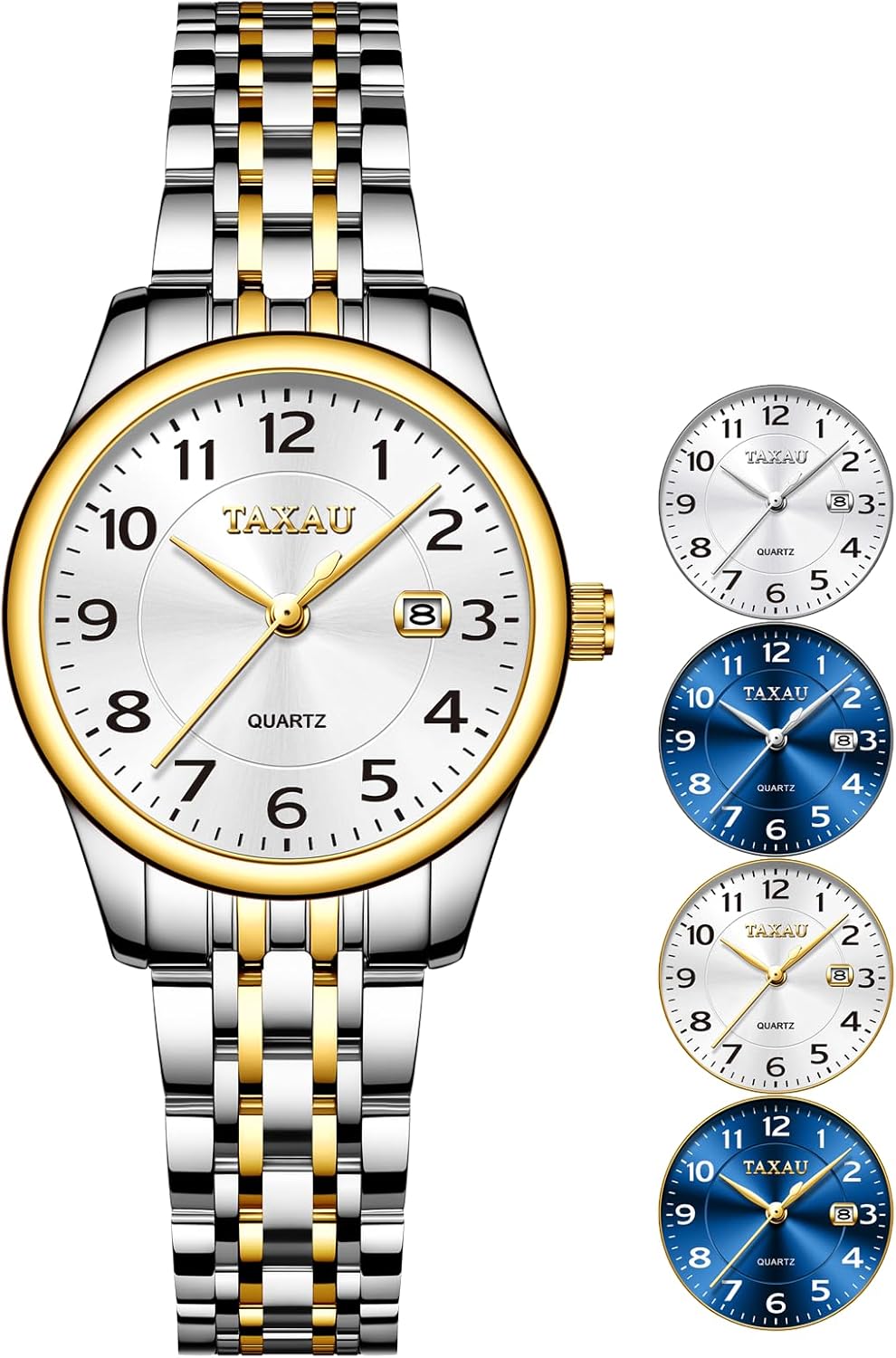 Women Dress Watches Elegent Waterproof Ladies Watch with Date Large Arabic Numerals Two Tone Stainless Steel Analog Quartz Small Wrist Watch Reloj Mujer