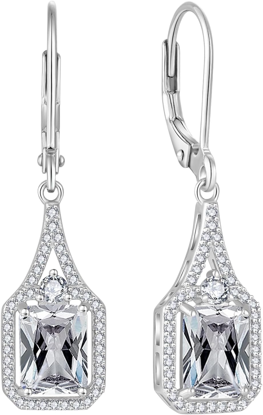 Emerald Cut Dangle Drop Earrings 925 Sterling Silver Halo Rectangular Leverback Earrings Birthstone Jewelry for Women