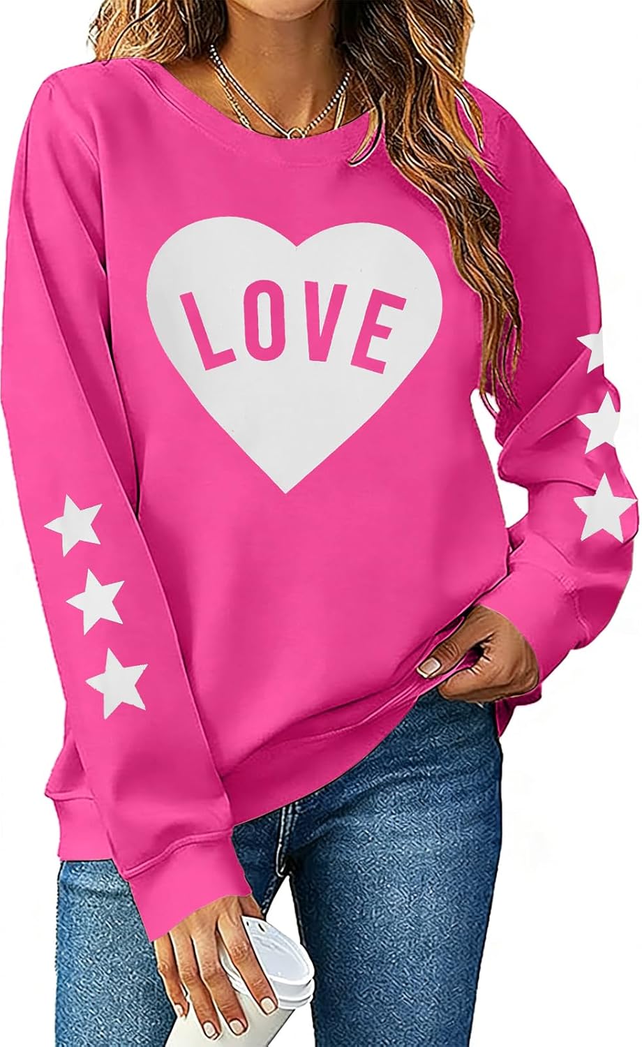 FRYAID Valentine's Day Sweatshirt Women Love Heart Stars Cute Grahic Shirts Casual Long Sleeve Holiday Pullover Tops