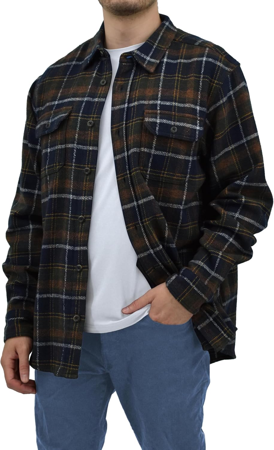 Andrew Scott Mens' Flannel Shirt Jacket | 100% Cotton Button Down Long Sleeve Shaket with Pockets