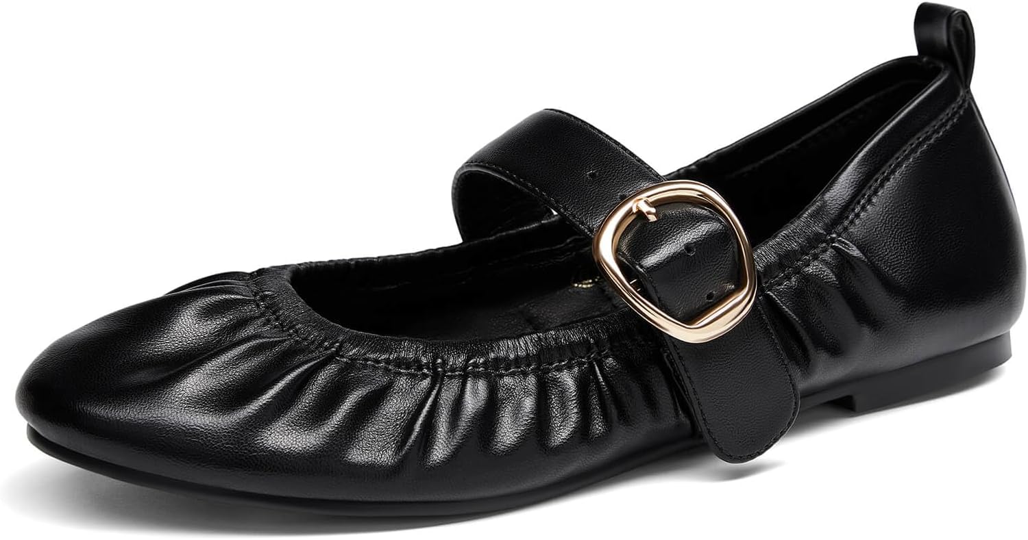 Coutgo Womens Ballet Flats Ruched Round Toe Mary Jane Flats Comfortable Slip On Dressy Shoes