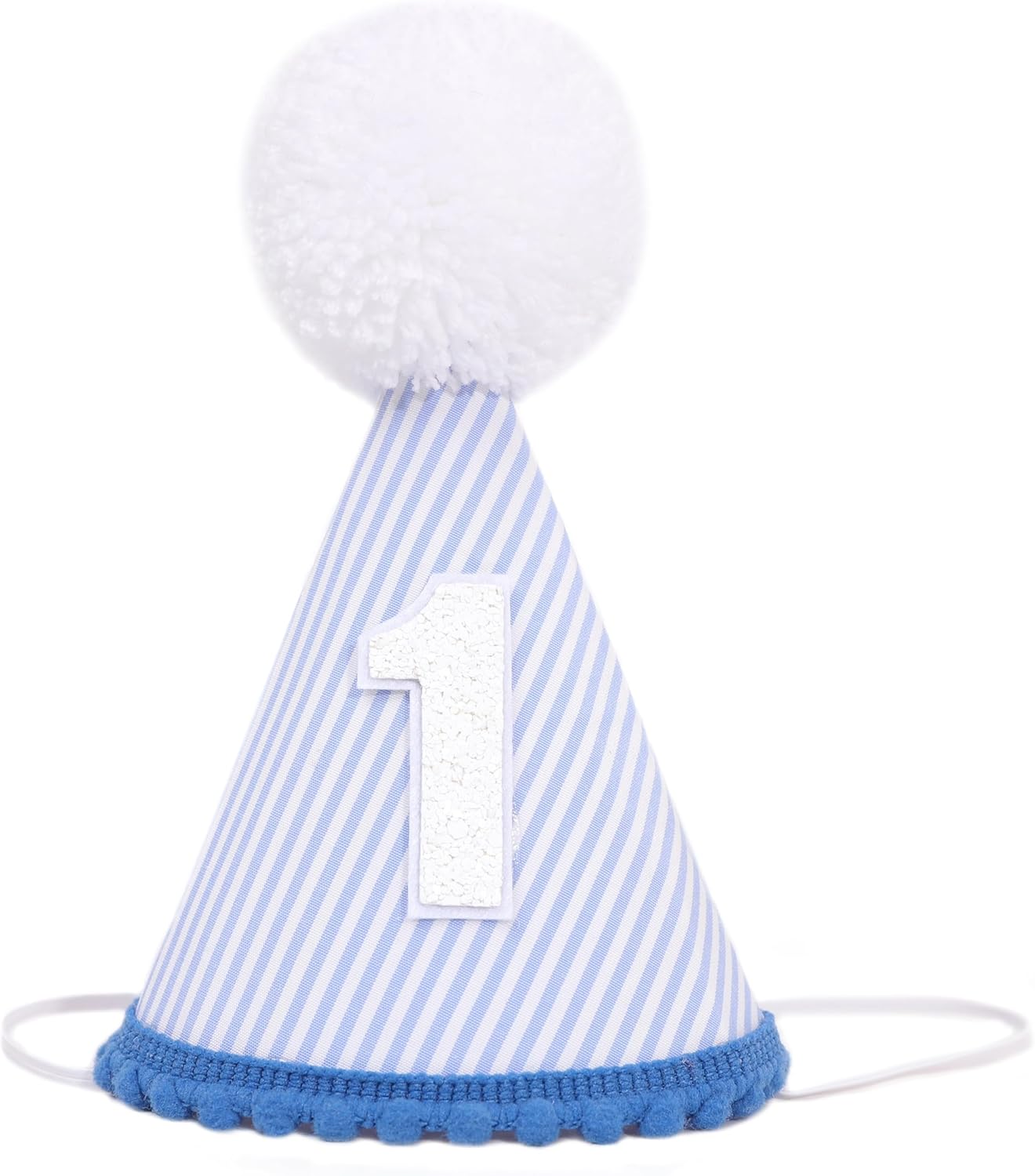 Boys Blue 1st Birthday hat - Navy 1st Birthday Cone Hat,First Bday Crown For Boys, One Blue Party Hat Photo Props, Boy First Bday Decoration