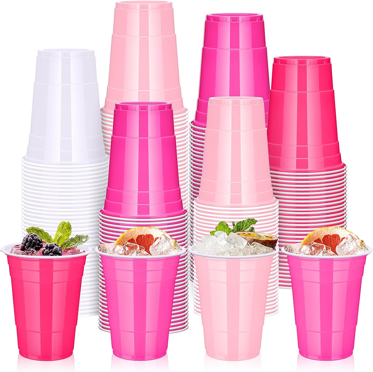 - Stylish Pink Theme: our 16-ounce plastic cups feature a pink color scheme that adds a touch of elegance to your event, conveying a gentle, romantic charm; Pink invites imagination and gives them exciting potential, making them a perfect complement to most parties and gatherings; Add a touch of sophistication to Valentine's Day, birthdays, graduations, weddings, and more