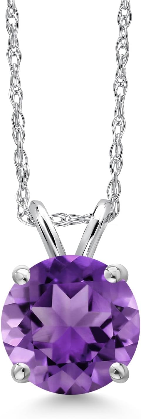Gem Stone King 14K White Gold Purple Amethyst Pendant Necklace for Women | 1.20 Cttw | Gemstone February Birthstone | Round 7MM | With 18 Inch Chain