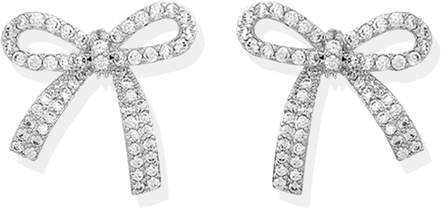 Rhinestone Bow Earrings for Women Sparkly Bow Drop Earrings Silver Crystal Tassels Earring Shiny Christmas Gifts 2025 Trendy