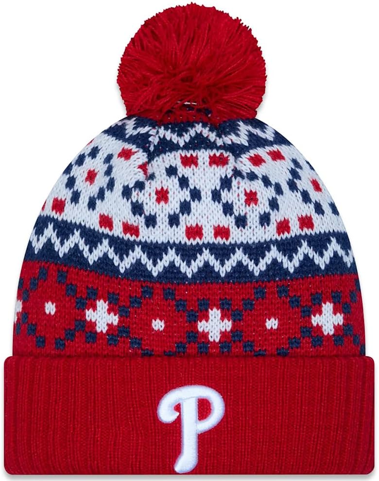 New Era Youth Philadelphia Phillies Pom Cuffed Knit Beanie Hat Red