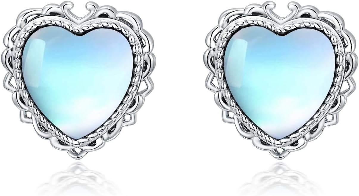 Moonstone Stud Earrings for Women 925 Sterling Silver Heart Shaped Moonstone Earrings Ladies Jewelry