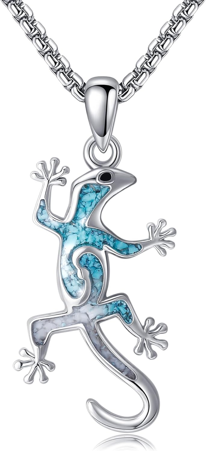 Turquoise Necklace For Women Phoenix/Gecko/Hummingbird/Dragonfly/Butterfly/Flower of Life/Palm Tree Necklace 925 Sterling Silver Turquoise Valentine's Day Jewelry for Women Men