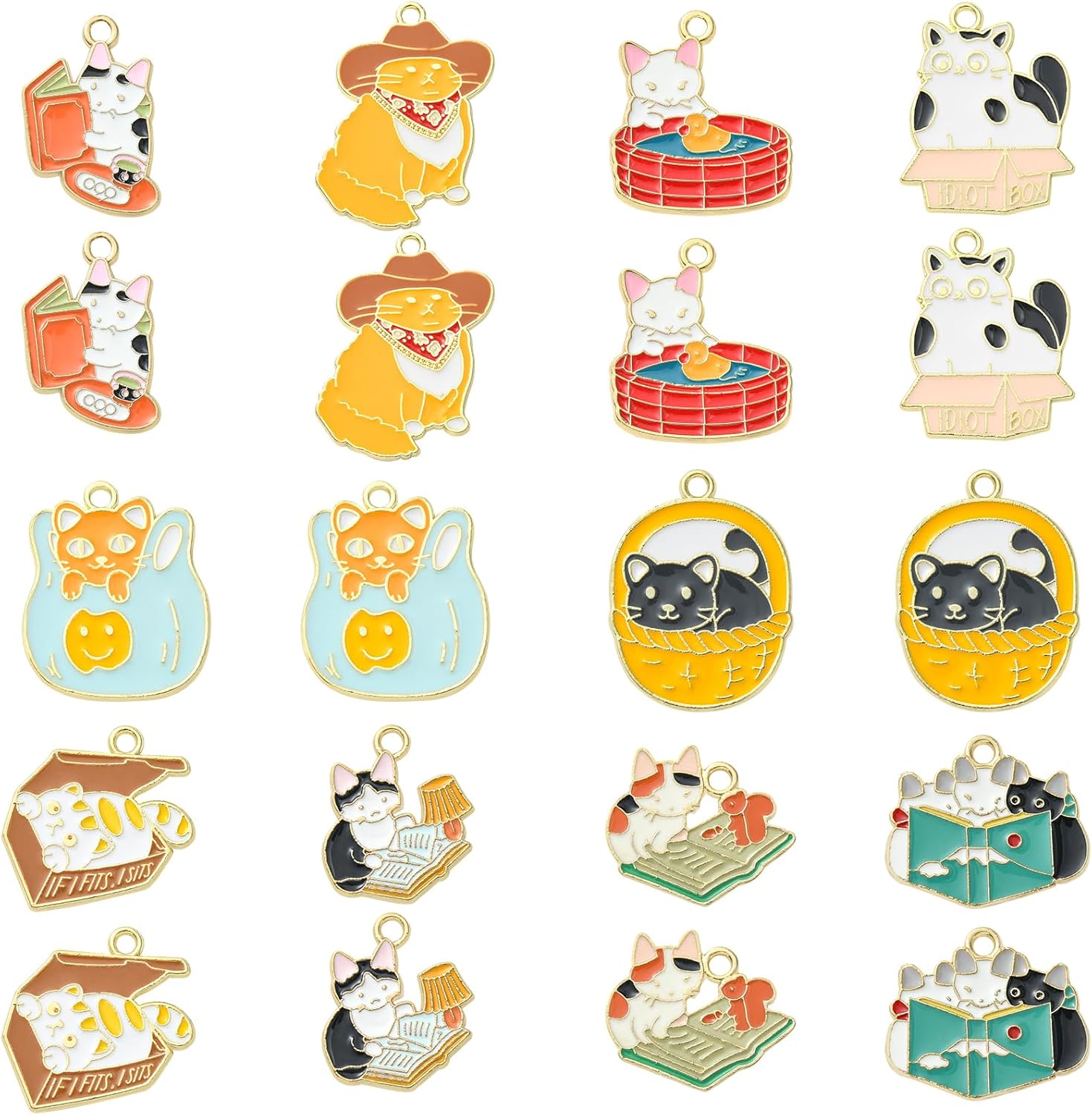 20pcs Cat Charms - Alloy Enamel Colorful Charms for Jewelry Making - DIY Craft Supplies