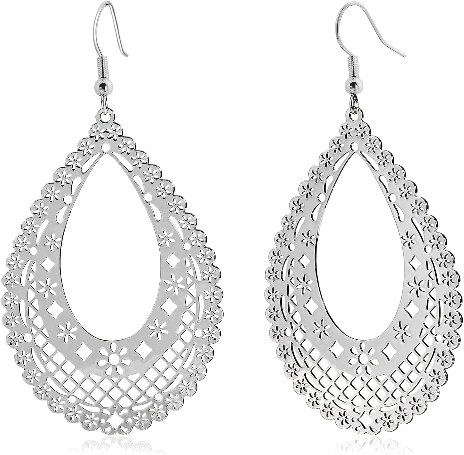 Teardrop Earrings for Women – Intricate Filigree Drop Earrings with Openwork Design, Elegant Dangle Earrings Lightweight Boho Jewelry for Everyday & Special Occasions - Gold & Silver