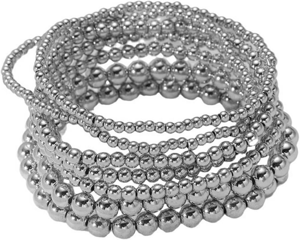 Gold Bead Stack Bracelets Adjustable Bead Ball Stretch Bracelets Set Fashion Accessories Gifts