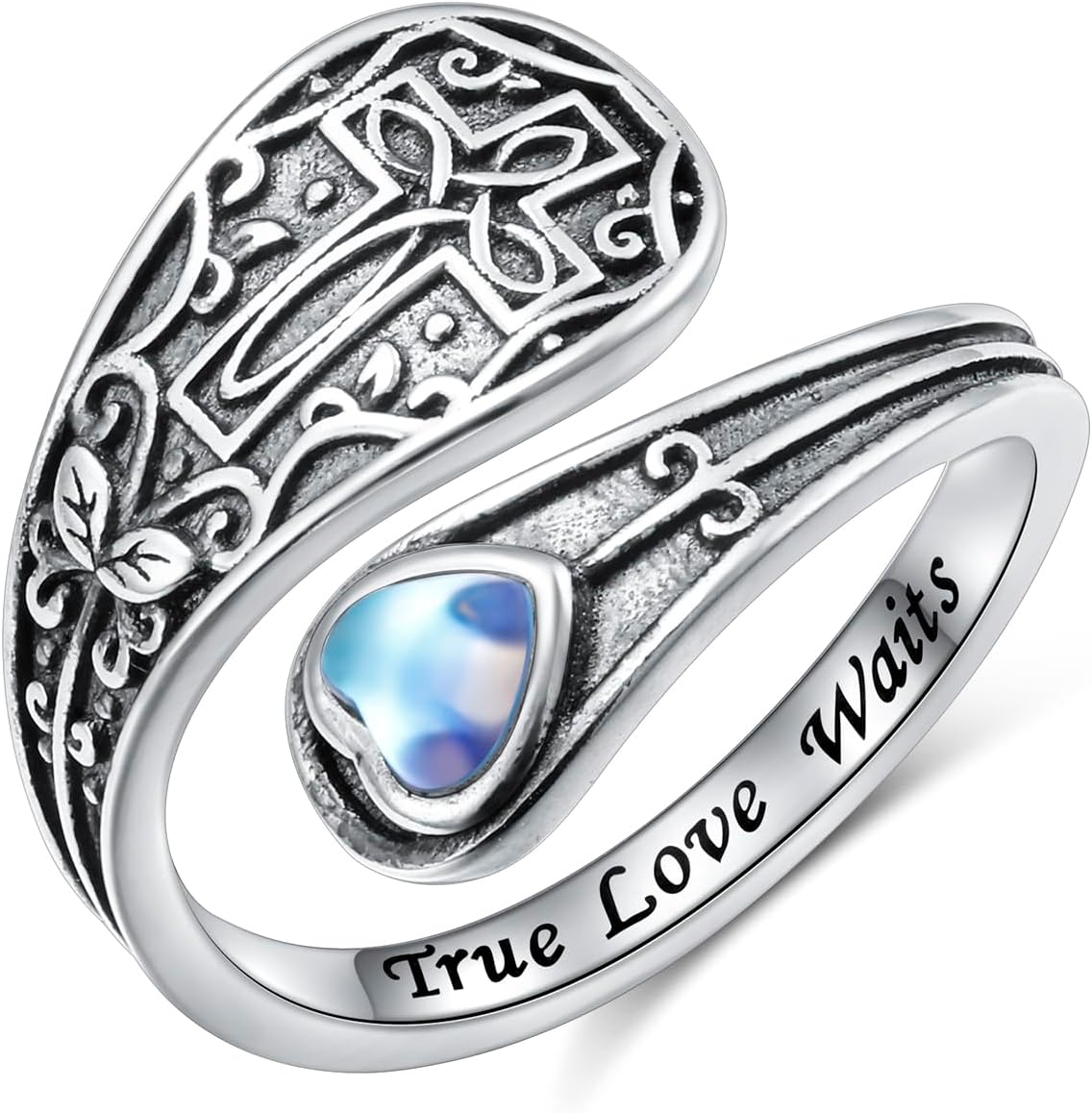 YinShan Adjustable Spoon Ring with Message for Men Women Boys Girls 925 Sterling Silver Oxidation Vintage Rings for Friends Religious Christmas Gifts
