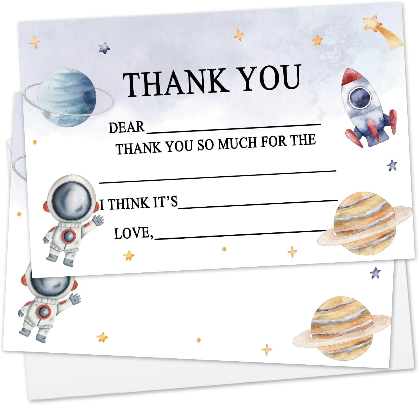 Astronaut Kids Birthday Party Thank You Cards, 20 Outer Space Fill In the Blank Thank You Cards for Kids Teen, Birthday Graduation Party Thank You Notes For Boys or Girls -03