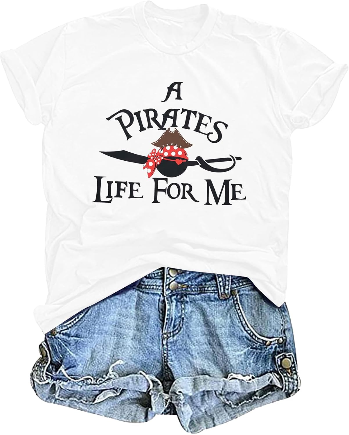 Cruise Shirts Pirate Costume Women a Pirate Life for Me Graphic Tee Family Cruise Shirt Causal Short Sleeve Tops
