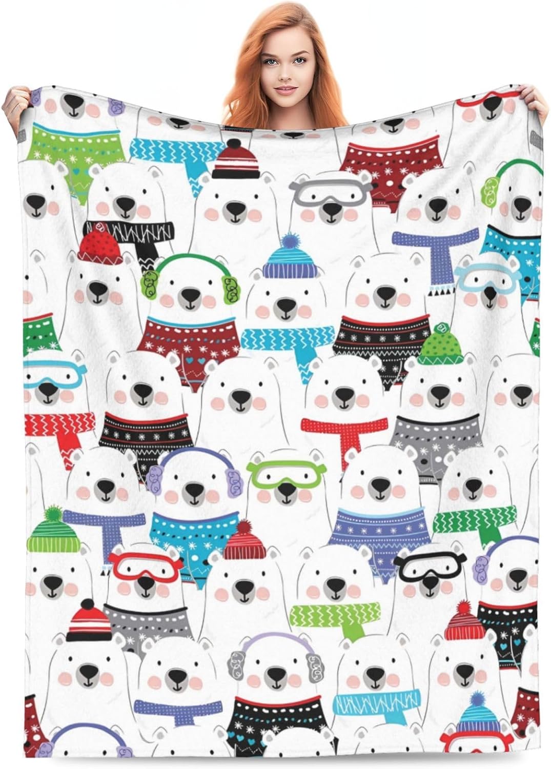 Polar Bear Blankets, Lightweight Plush Fuzzy Cozy Soft Flannel Blanket for Bed, Sofa, Couch, Travel, Camping 50"X40"