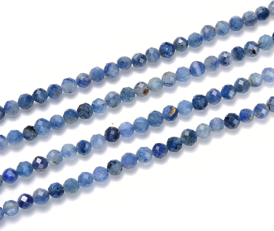 Adabele 15 Inch Natural Blue Kyanite Healing Gemstone 4mm (0.16 Inch) Tiny Small Faceted Round Loose Beads Stone Spacer (80-90pcs) for Craft Jewelry Making GK4-21