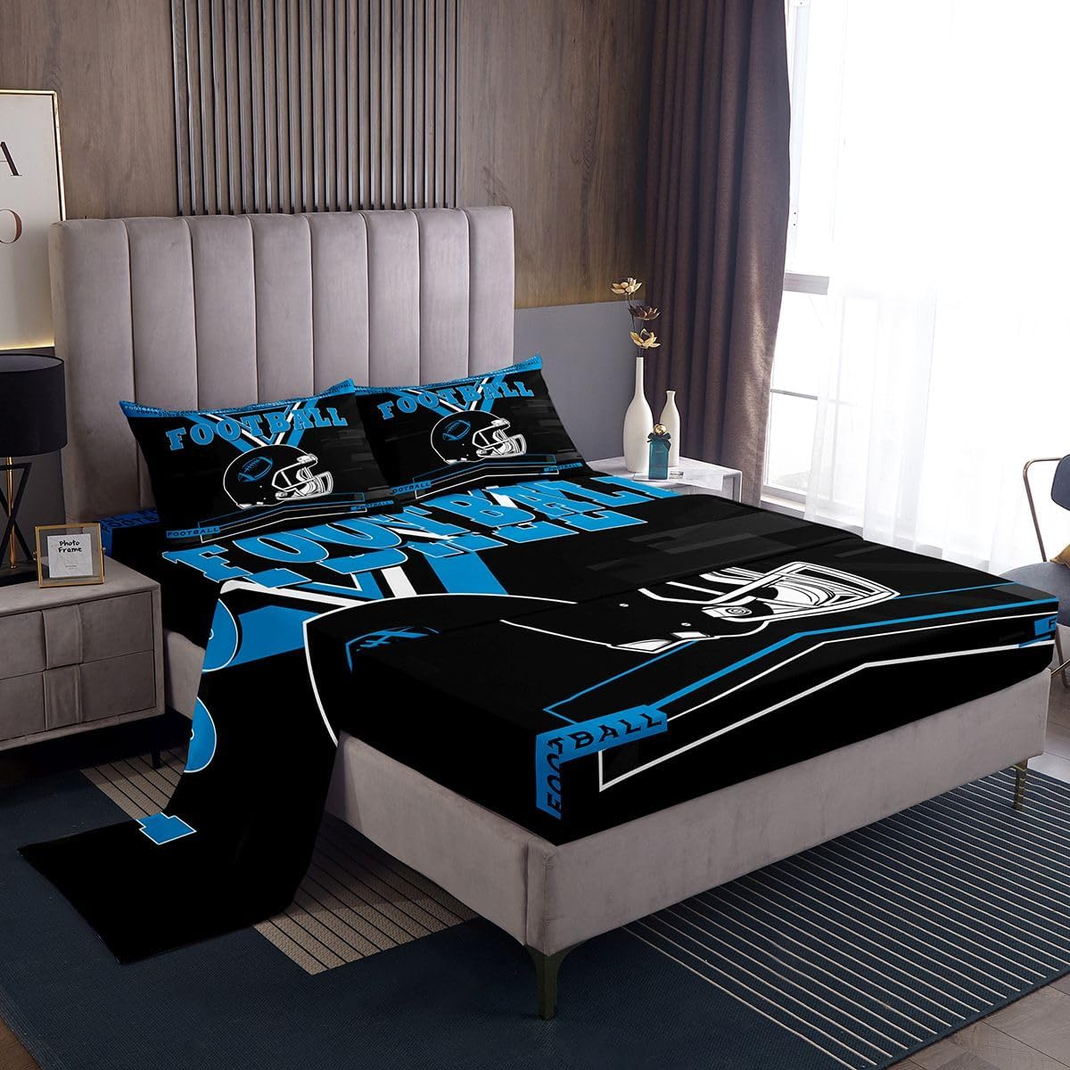 Erosebridal Queen Football Bed Sheets Set for Fan,Rugby Sheet Set for Kids Boys Teens,Football City Sheets,Sports Flat Fitted Sheet with 2 Pillowcases Deep Pockets