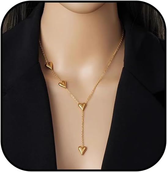 Gold Heart Necklace for Women Long Heart Lariat Y Necklace Dainty Gold Heart Pendant Necklaces Birthday Party Jewelry