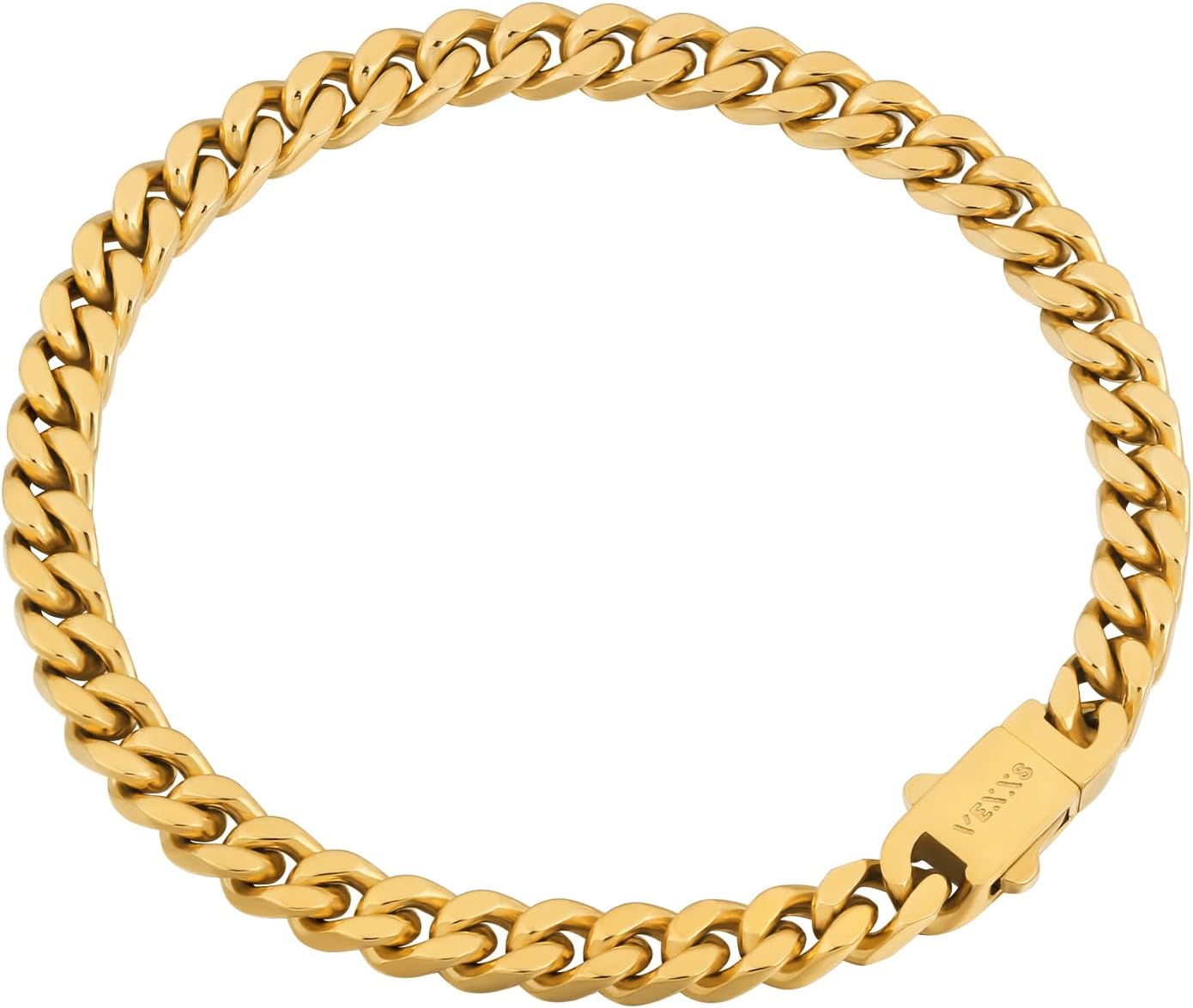 VEXXS Cuban Link Bracelet Flat Cut, 18K Real Gold Filled Stainless Steel Gold Bracelet, Durable No Color Fading 5mm 7mm Men’s Chain Bracelet Men’s Jewelry