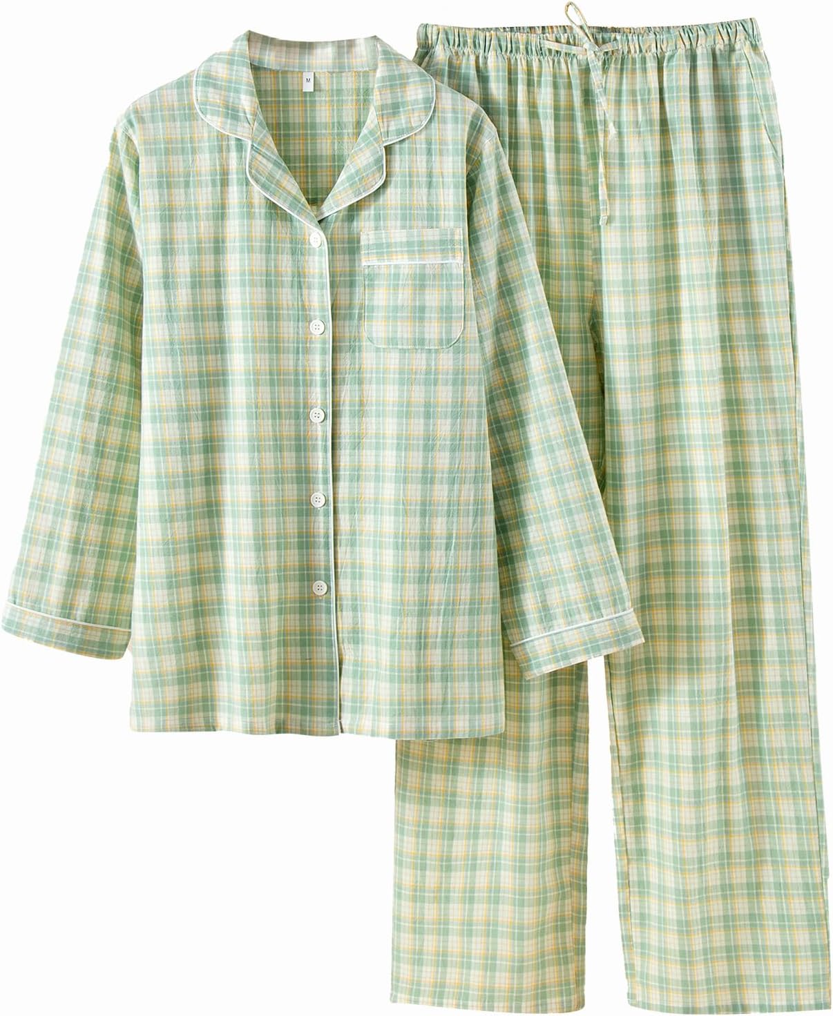 Women's 2 Piece Cotton Pajama Sets Long Sleeve Sleepwear Button Down Soft Lightweight Pj Pants Set With Pockets